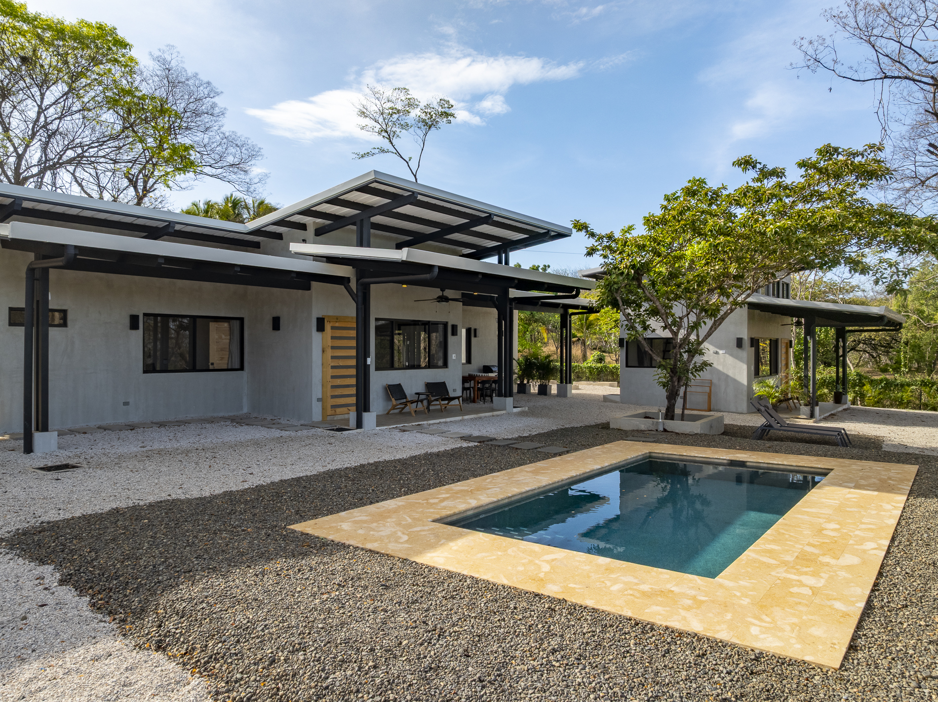 Welcome to this brand new, affordable modern home in Playa Negra! Ultimately, a peaceful lifestyle is what we all truly desire. Finca Los Pargos in Playa Negra is a small, thoughtfully designed community that offers exactly that. Spanning 370 acres in the scenic mountains of Playa Negra, just 40 minutes south of Tamarindo, this community provides an exceptional sense of privacy and space. Every single property is over an acre in size, creating a serene environment where, even with neighbors, it feels like you have the land all to yourself.