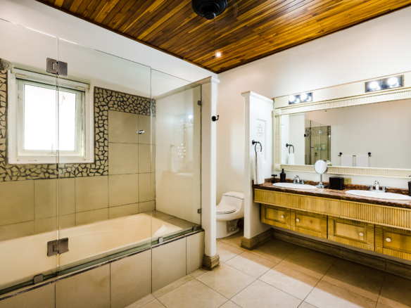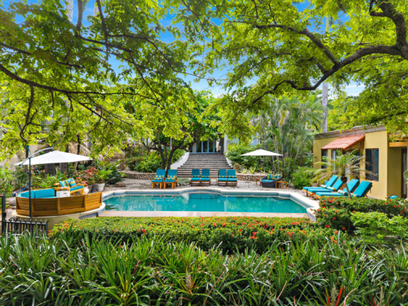Casa de Luz a world class titled beachfront estate located in Playa, a gated Spanish colonial villa on Playa Langosta’s famous Millionaire Row, offers 7,200 sq ft of living space across two oceanfront lots, complete with a private honeymoon casita just steps from the waves.