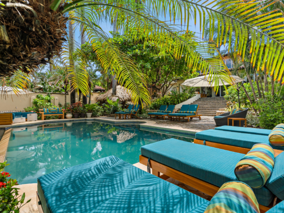 Enjoy nightly sunsets from the pool, palapa, or beach hammocks.