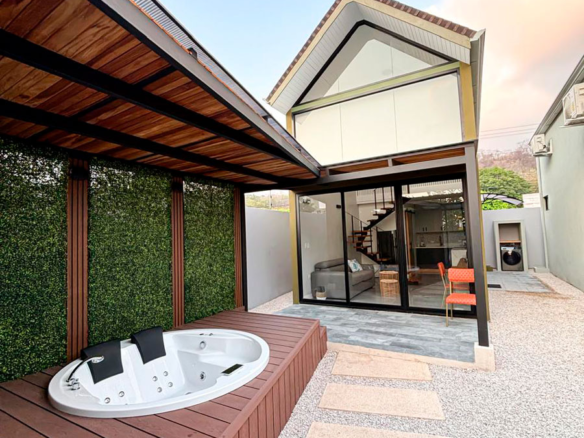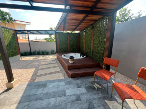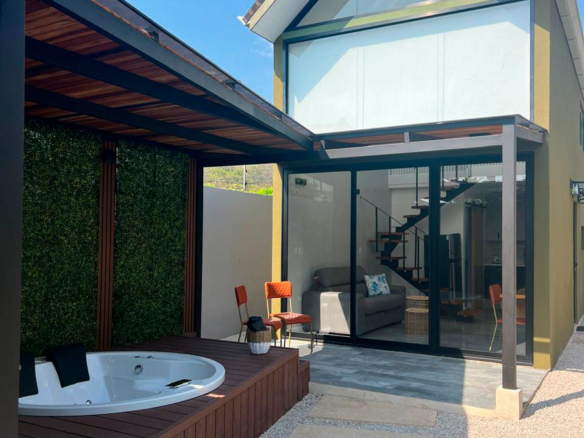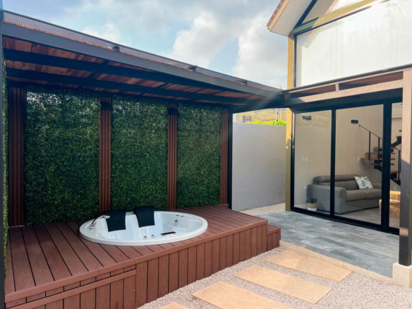 - Outdoor relaxation: Private terrace with Jacuzzi surrounded by tropical landscaping