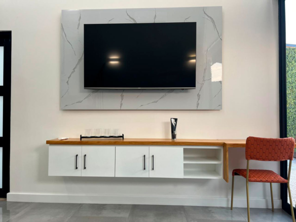 - Modern kitchens: Dekton & quartz backsplash, MDF Hidrófugo cabinetry, and polyurethane finishes