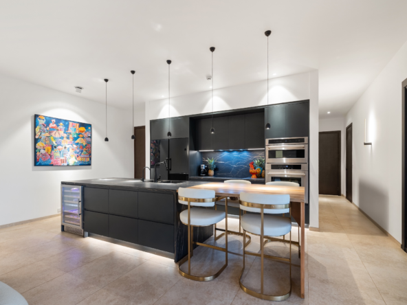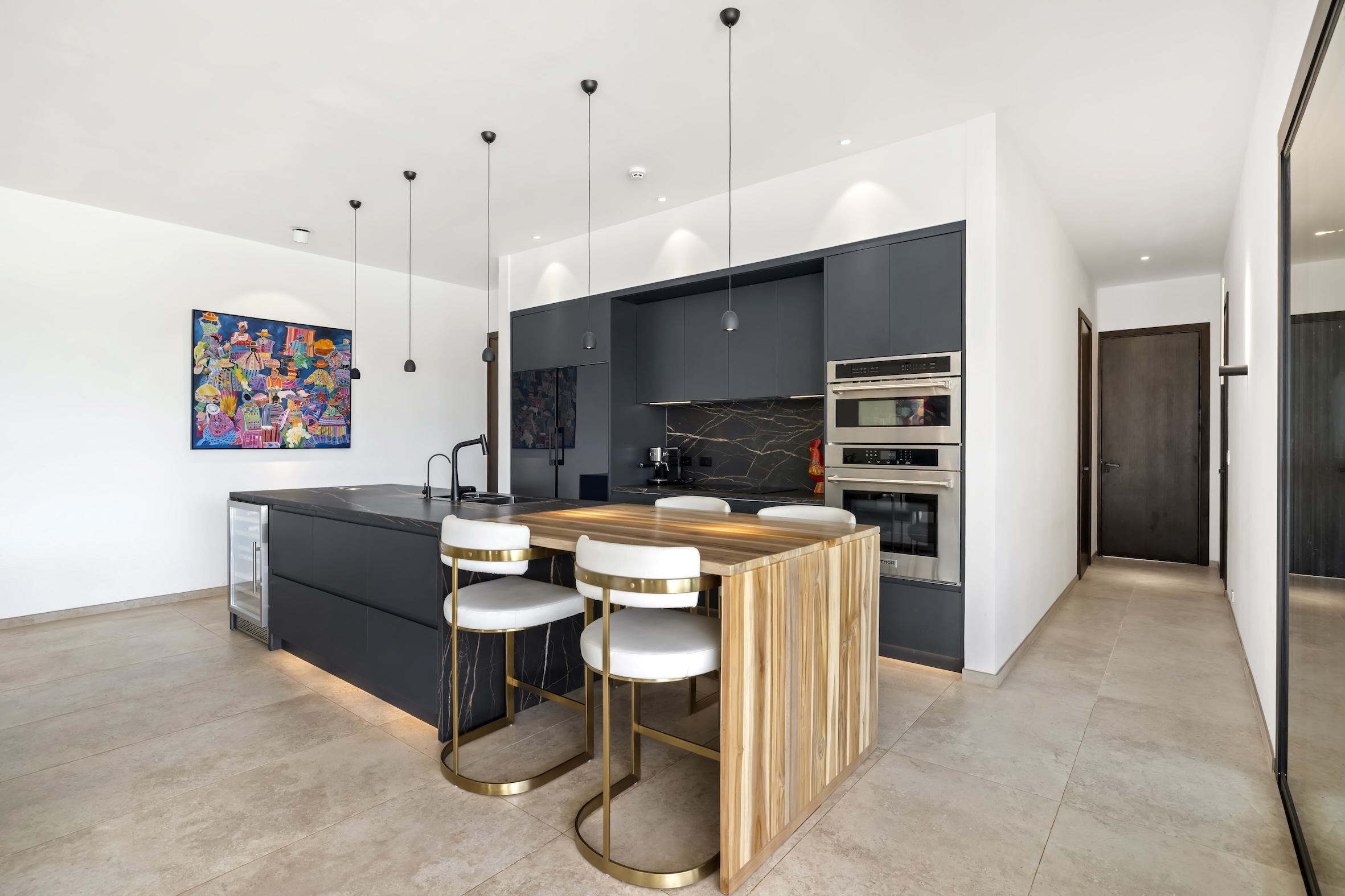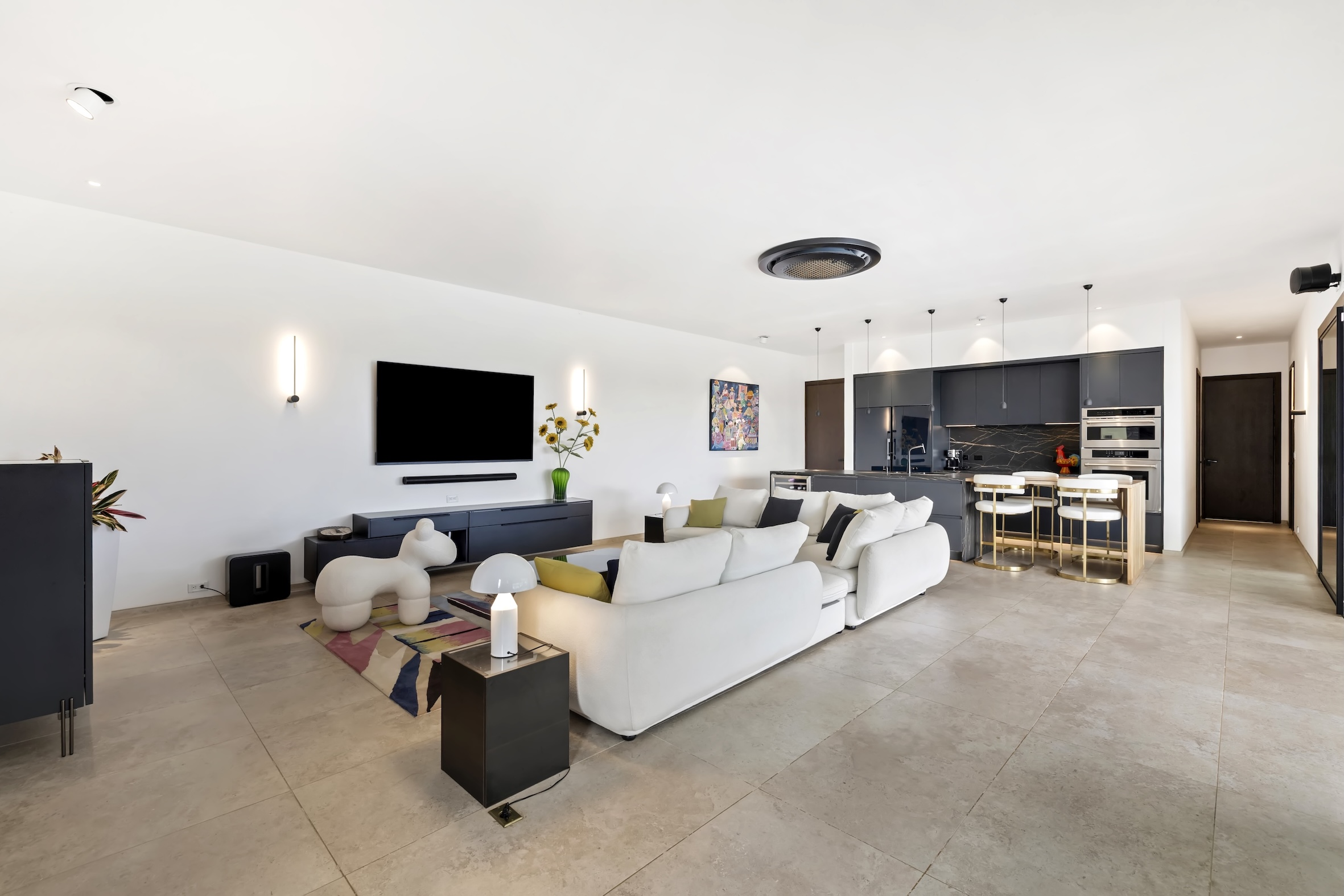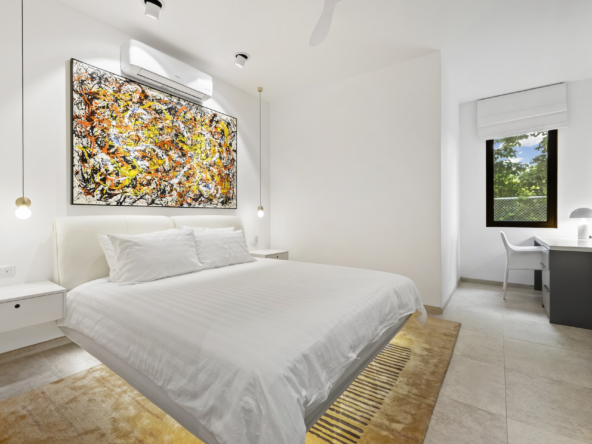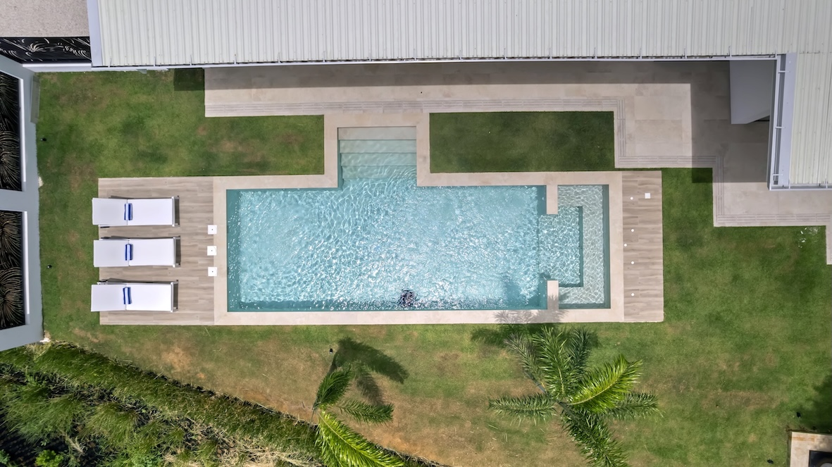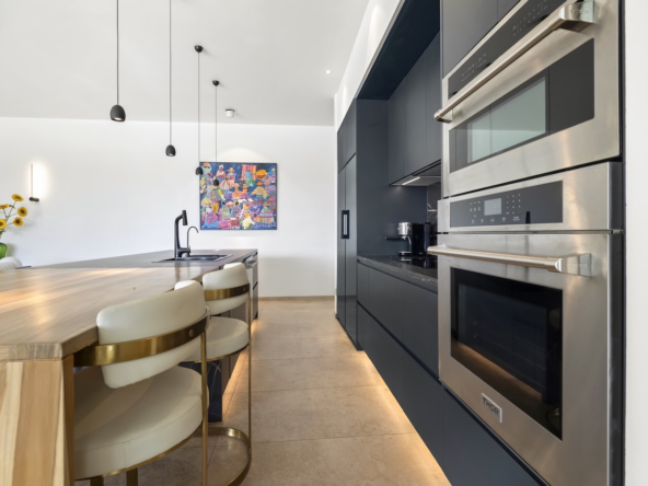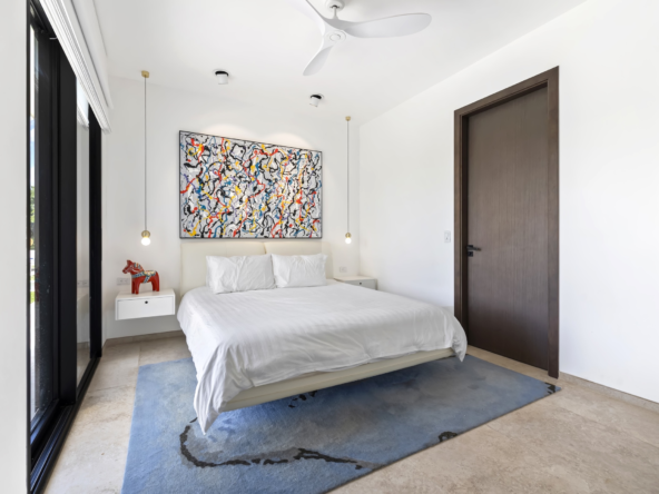 A private 3BR/3.5BA sanctuary where European Sophistication meets tropical living. Spanning 2,745 sq ft (255 m²) on an 850 m² lot, this contemporary hillside residence features an open-concept design with expansive glass doors flowing to a large terrace, 323 sq ft saltwater pool with jacuzzi, and panoramic valley views.