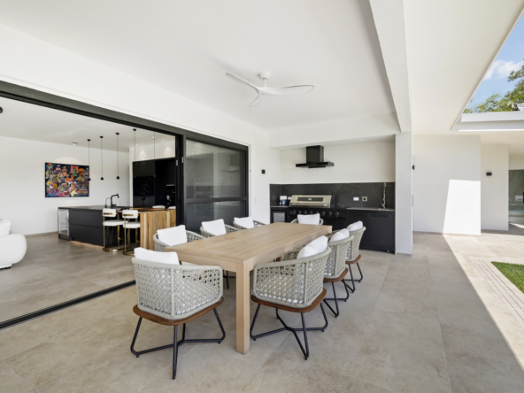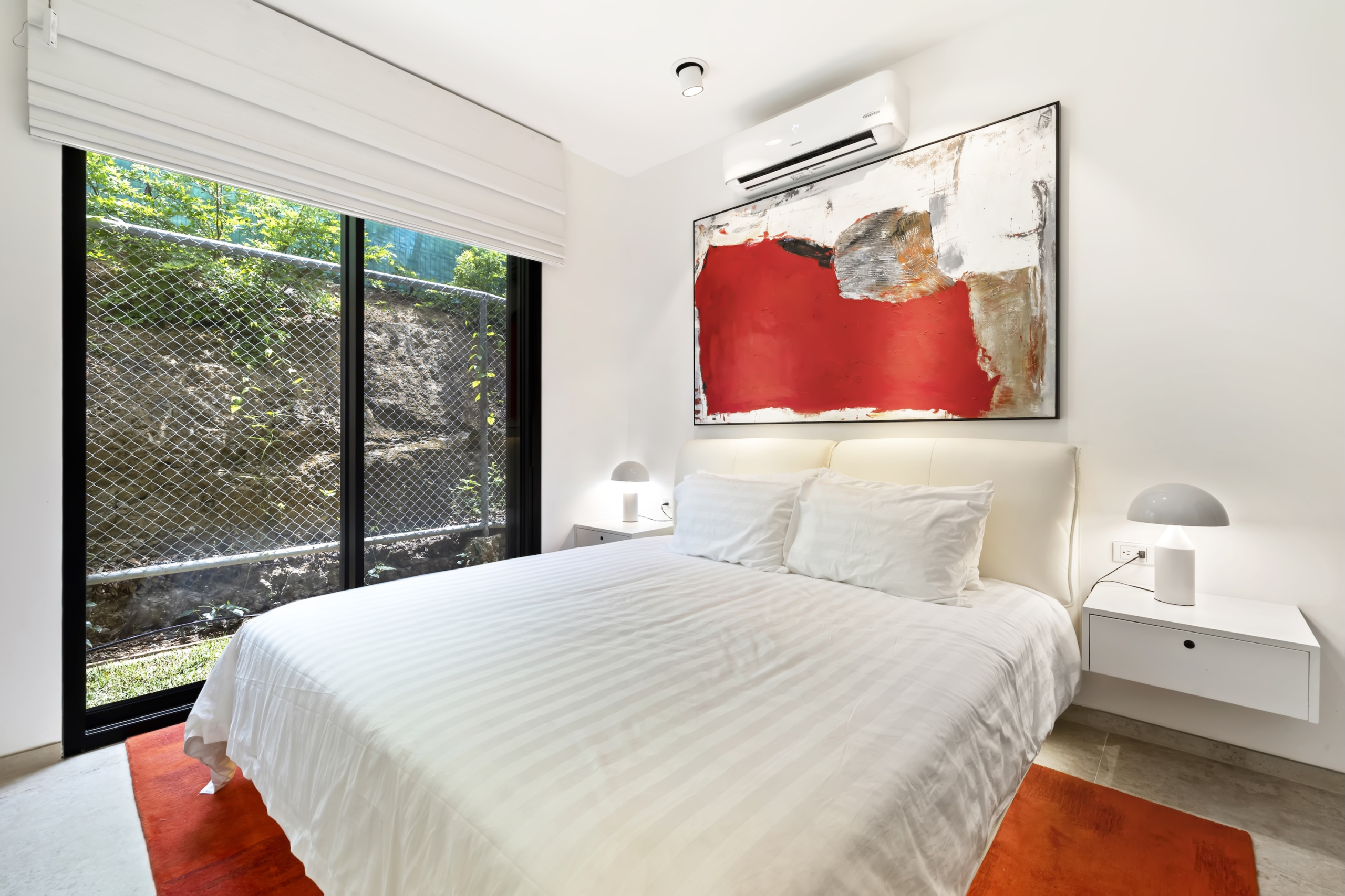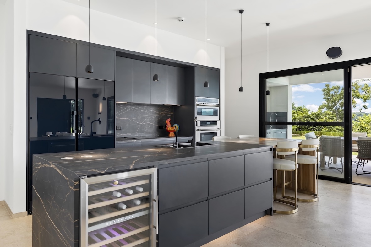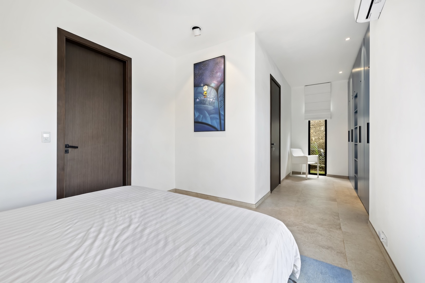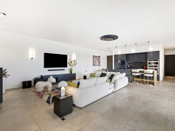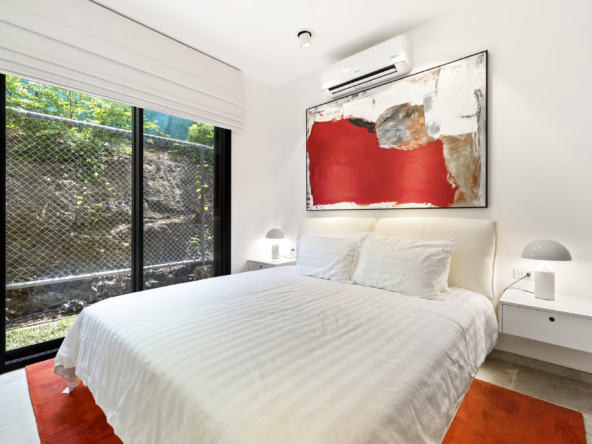A private 3BR/3.5BA sanctuary where European Sophistication meets tropical living. Spanning 2,745 sq ft (255 m²) on an 850 m² lot, this contemporary hillside residence features an open-concept design with expansive glass doors flowing to a large terrace, 323 sq ft saltwater pool with jacuzzi, and panoramic valley views.