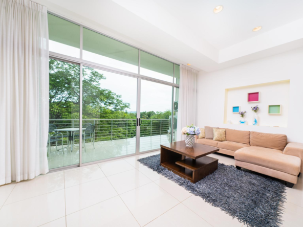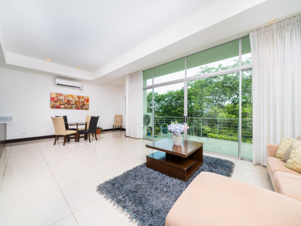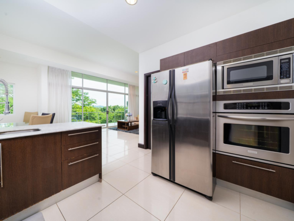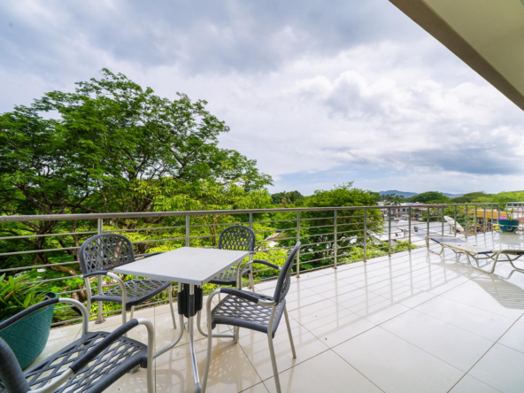 The property features 1,615 square feet of well-designed interior space, with a spacious open layout that connects the kitchen, dining, and living areas. A large private balcony overlooks tropical landscaping—perfect for enjoying the surrounding nature in privacy.