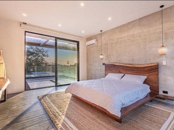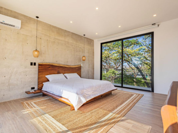 The centerpiece of this property is a large pool surrounded by a patio, seamlessly blending indoor and outdoor spaces. With floor-to-ceiling windows, a second-floor terrace, polished concrete surfaces, black marble tops, teak wood accents, electric blinds, imported Italian furniture, and Indonesian green stone, Villa Uuana presents a contemporary, elegant, and low-maintenance haven, ideal for anyone searching for luxurious Playa Langosta real estate.